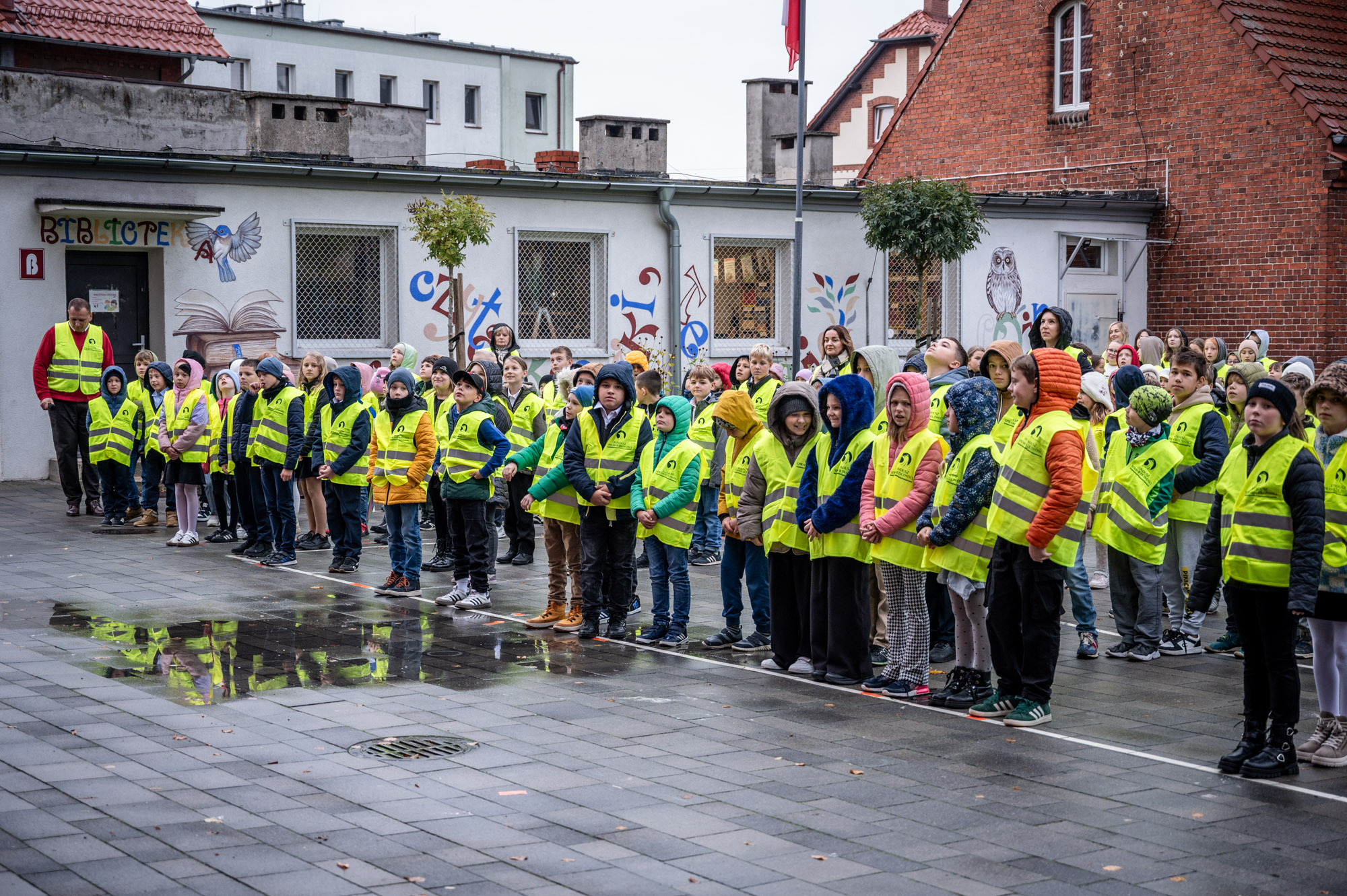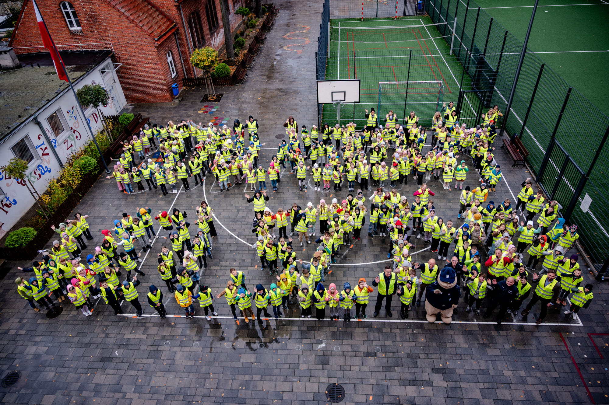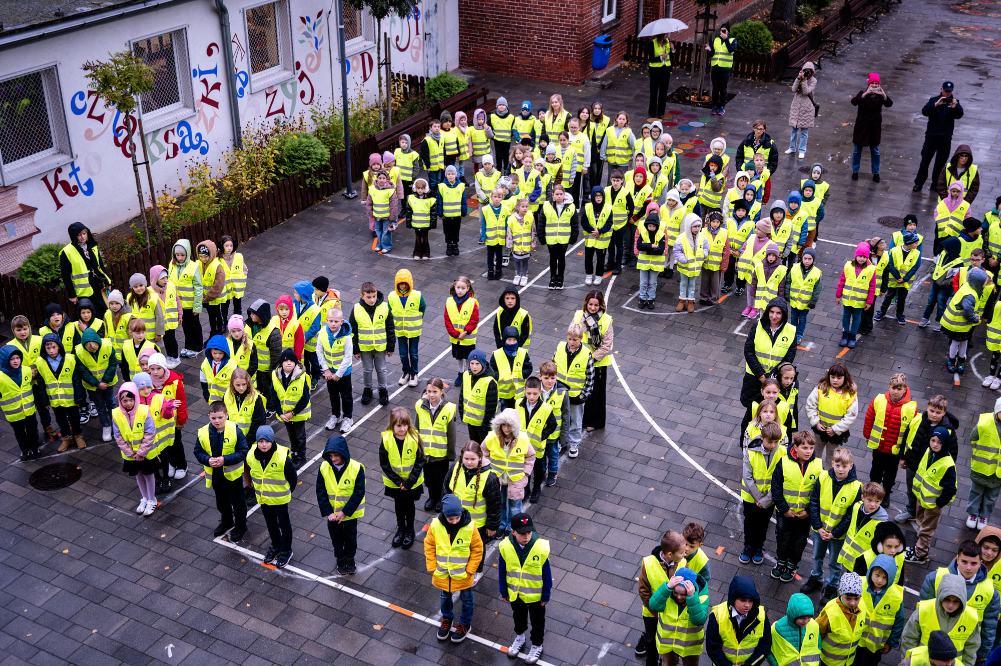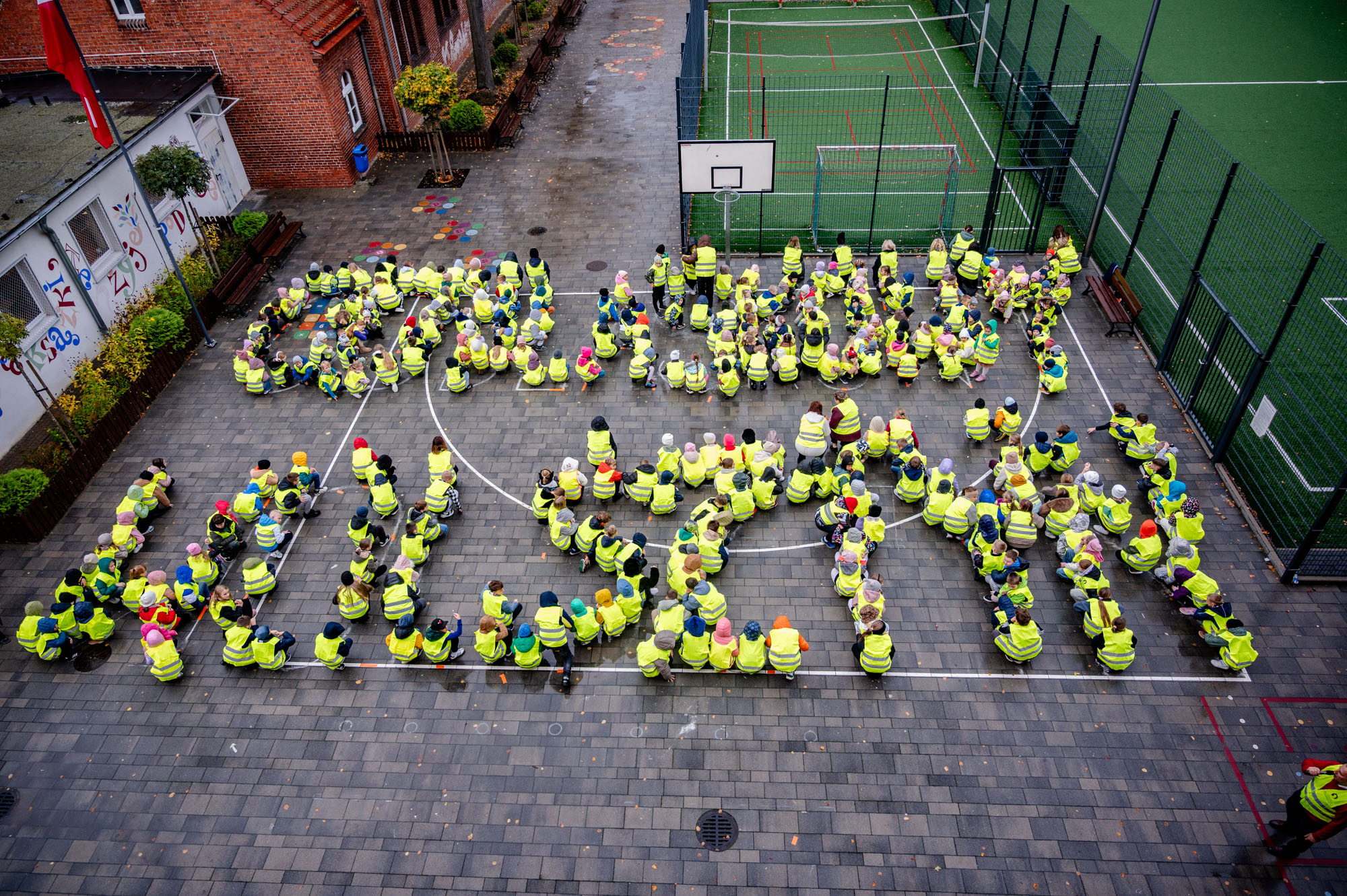 Uczniowie Szkoły Podstawowej nr 1 z Oddziałami Dwujęzycznymi im. Powstańców Wielkopolskich w Wolsztynie rozpoczęli działania w ramach konkursu „Odblaskowa Szkoła 2025”. Ubrani w kamizelki utworzyli napis „Odblaskowy Wolsztyn”.