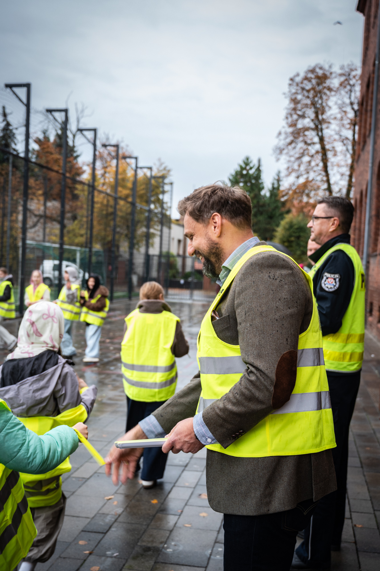 W wydarzeniu uczestniczył Burmistrz Wolsztyna Dominik Tomiak, funkcjonariusze Komendy Powiatowej Policji w Wolsztynie wraz z naczelnikiem Wydziału Ruchu Drogowego Piotrem Horowskim oraz prezes firmy NorDan Polska Waldemar Ptak, która przekazała uczniom dodatkowe elementy odblaskowe zwiększające ich widoczność na drodze.