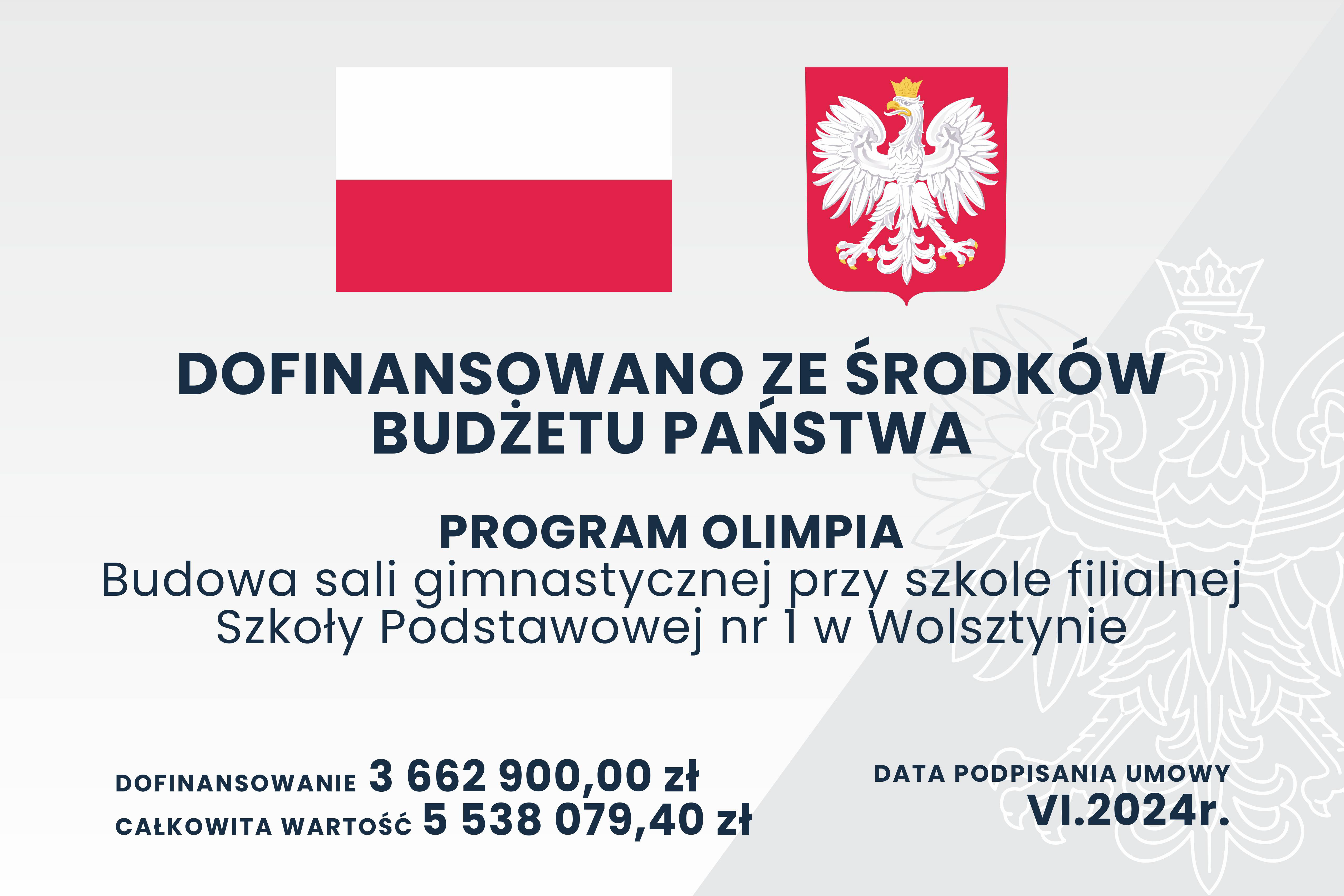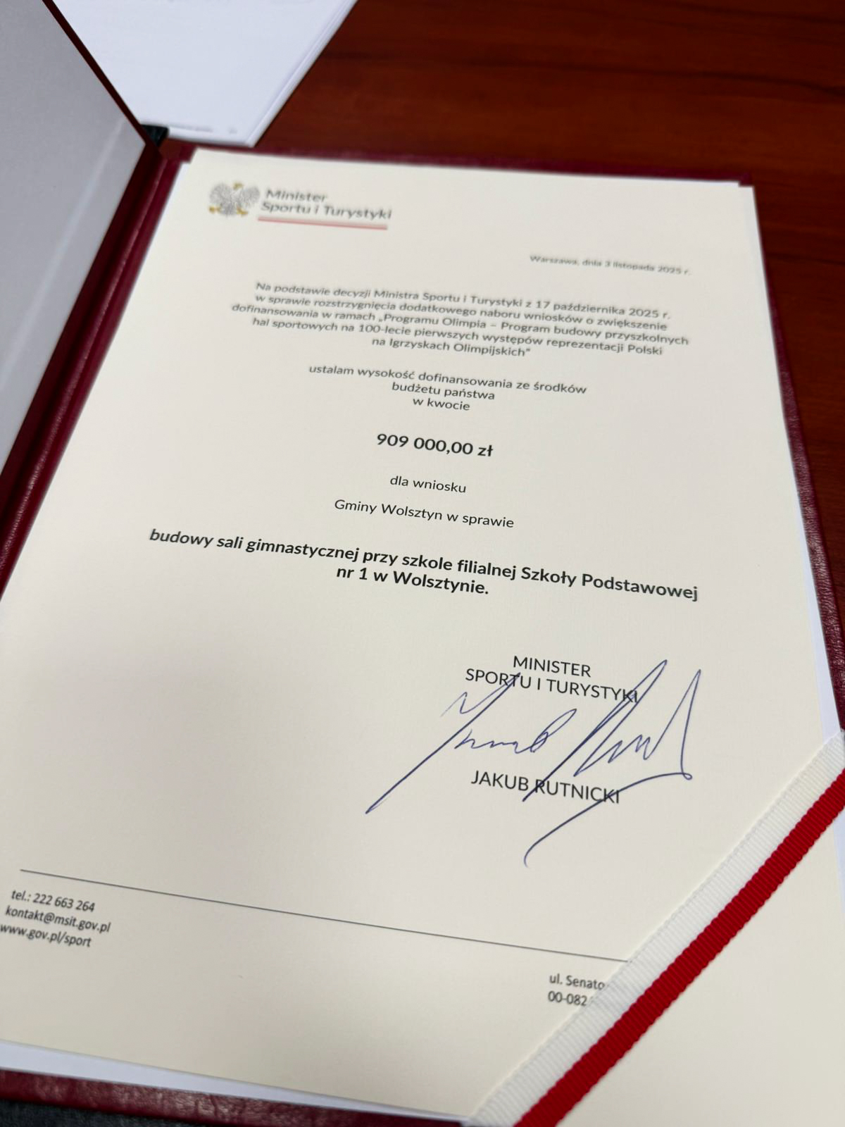 Ministerstwo Sportu i Turystyki zwiększyło dofinansowanie na budowę przyszkolnych hal sportowych w Starym Widzimiu i Tłokach! Dodatkowe środki w wysokości 1,26 mln zł to efekt wniosku złożonego przez Gminę Wolsztyn w naborze o zwiększenie dotacji w ramach programu „Olimpia - Program budowy przyszkolnych hal sportowych na 100-lecie pierwszych występów reprezentacji Polski na Igrzyskach Olimpijskich”.