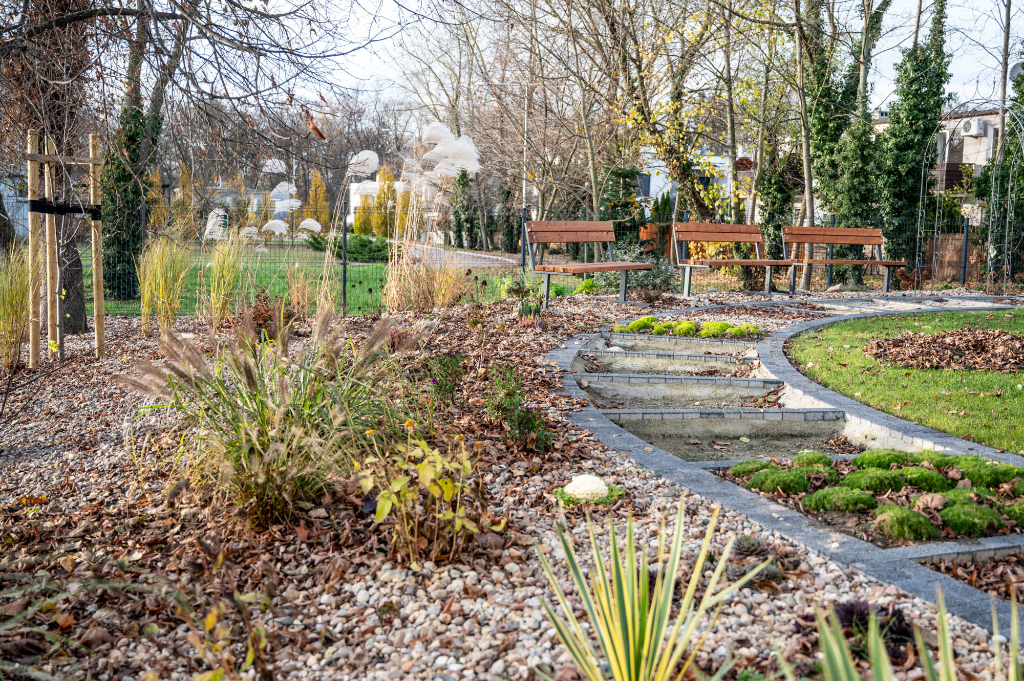 Uczestnicy wraz z terapeutami aktywnie uczestniczą w tworzeniu ogrodu, w szczególności poprzez obsadzanie i pielęgnację roślin. W ogrodzie powstała ścieżka sensoryczna, która jest wciąż rozbudowywana. Znajdą się na niej różne struktury, takie jak kamyczki, mech, piłeczki i kora, dzięki którym można doświadczać rozmaitych faktur i wrażeń dotykowych.