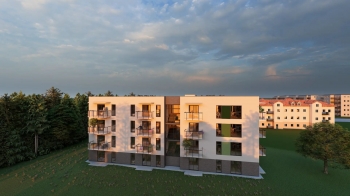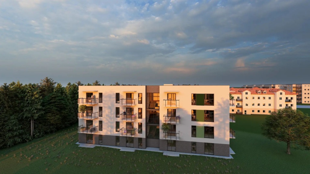 • Budynek wielorodzinny z dachem płaskim posiada cztery kondygnacje nadziemne, w którym wyodrębnione zostało 31 mieszkań. Powierzchnia użytkowa mieszkań wynosić będzie od 38,00 m² do 60,00 m²,