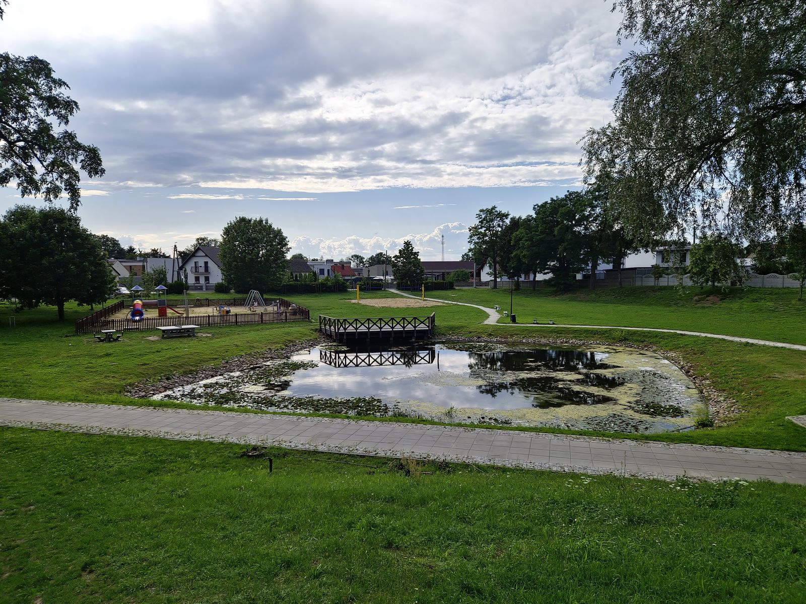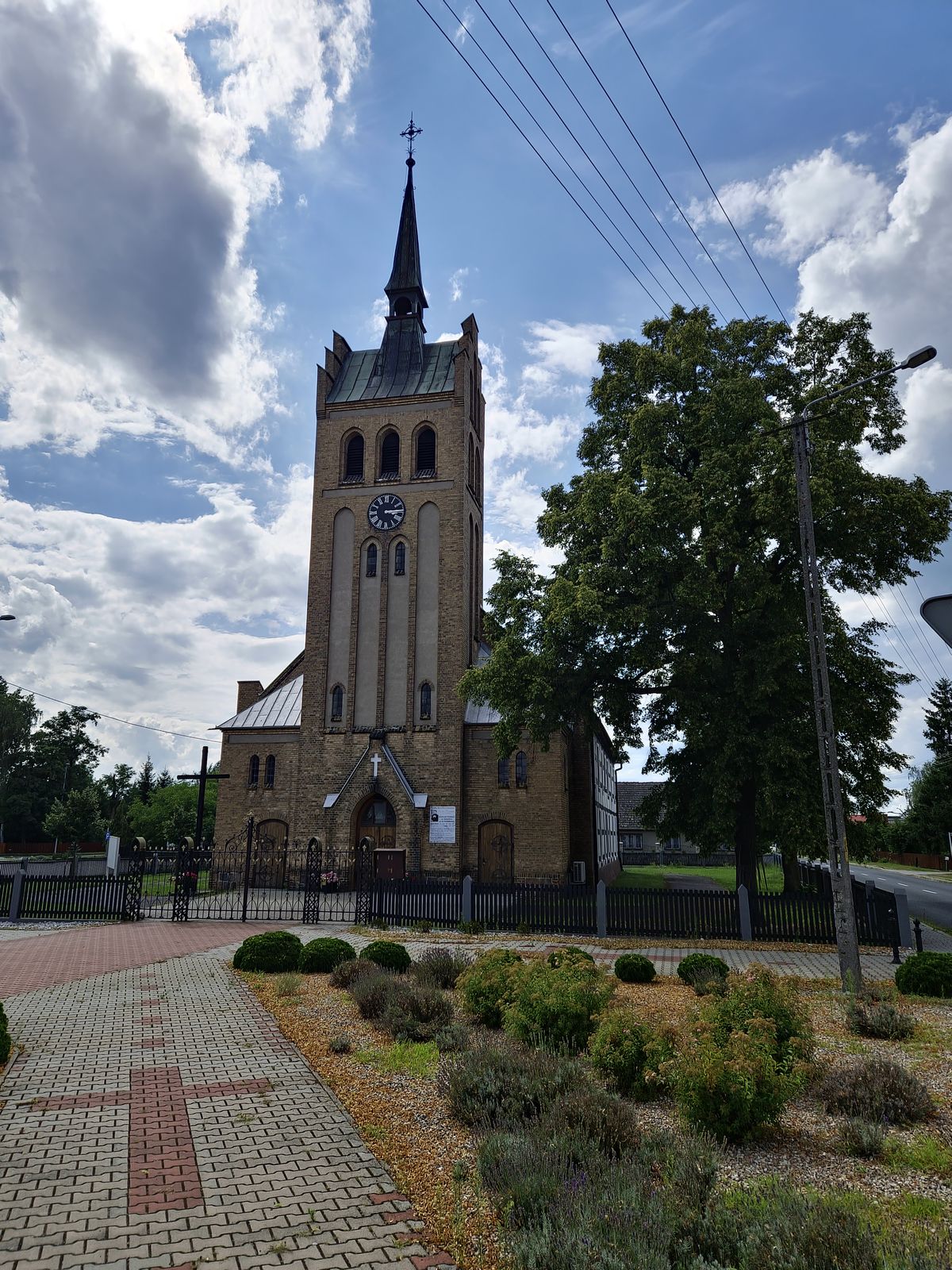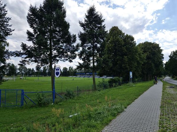 Podążając dalej główną drogą skręcamy w prawo i mijamy kościół św. Bartłomieja z połowy XIX wieku. Bezpośrednio za kościołem skręcamy w lewo. Za kanałem dojeżdżamy do stadionu, przed którym stoi kolejna tablica wyznaczająca nasz szlak. W tym miejscu zachęcamy do zapoznania się z legendą o kębłowskich dębach.