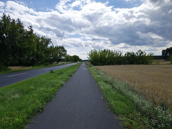 Następnie cofamy się do skrzyżowania i kierujemy prosto w kierunku Wilcza. Tuż za miejscowością po prawej stronie mamy szutrową ścieżkę rowerową.