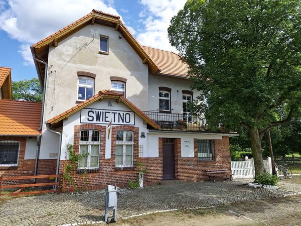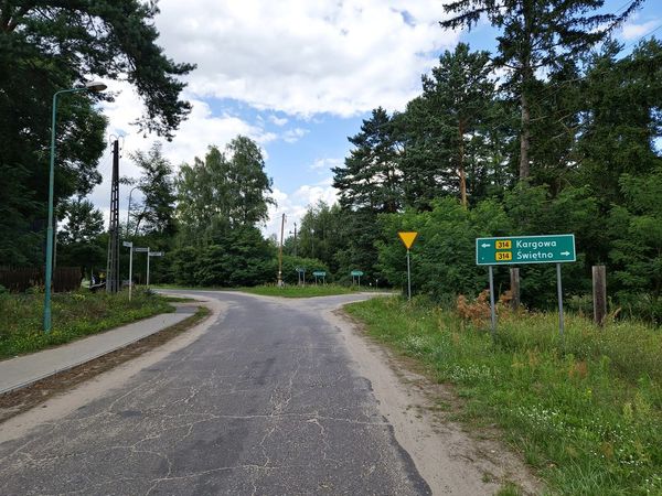 Następnie należy się cofnąć do skrzyżowania i kierować prosto w stronę Świętna.