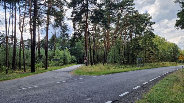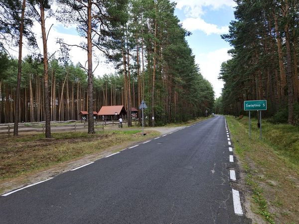 Jedziemy dalej prosto drogą asfaltową w kierunku Świętna (nie ma tu ścieżki rowerowej).