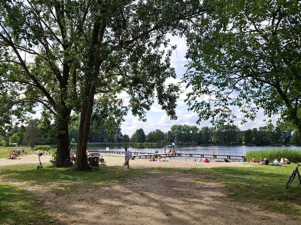 Nasz szlak skręca w prawo z ul. Cmentarnej w ul. Nową, jednak zainteresowani mogą odbić prosto, by po ok. 500 m dotrzeć do plaży przy Jeziorze Świętym, zwanym też Krutlą. Przy plaży znajdują się toalety.
