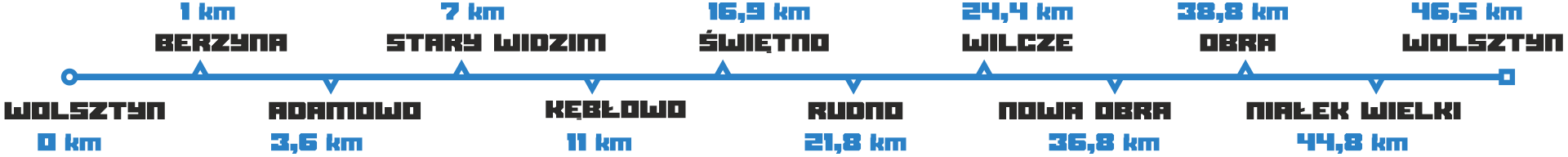 Szlak rozpoczyna się w okolicach wolsztyńskiego dworca kolejowo-autobusowego, gdzie pod wiaduktem znajdziemy pierwszą tablicę i granitowy słupek z logo Wolsztyna.