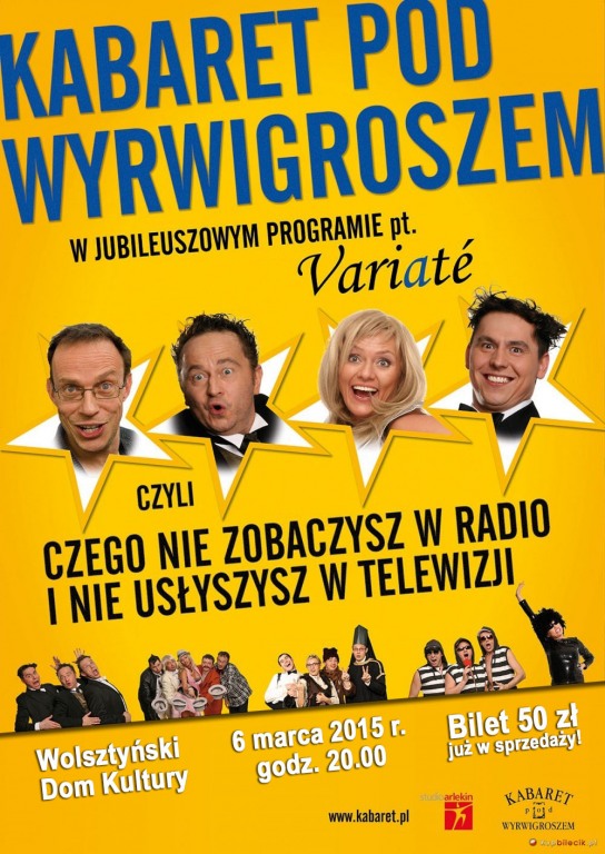 Mamy zaszczyt zaprosić Państwa na występ Kabaretu pod Wyrwigroszem, który będzie miał miejsce w Wolsztyńskim Domu Kultury już 6 marca 2015 r. o godzinie 20.00.